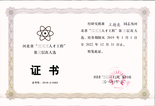 经公司推荐,石家庄市人力资源和社会保障局组织评审,报河北省“三三三人才工程”领导小组批准、地下工程公司王德亮荣获河北省“三三三人才工程”第三层次人选。