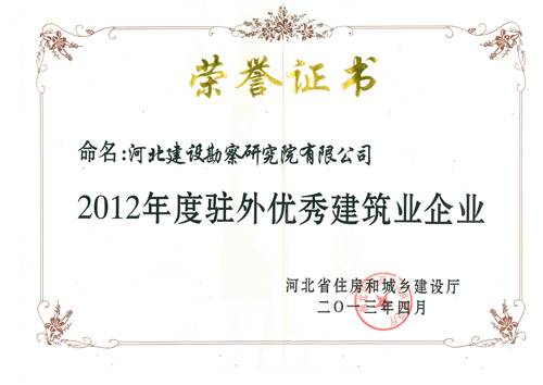 4月26日,河北省住房和城乡建设厅发布冀建市[2013]8号文件,对2012年度在工程质量安全管理等方面作出突出成绩的驻外建筑业企业和个人进行表彰。其中,我公司被命名为2012年度驻外优秀建筑业企业,祁建永、刘双辰、史晓楠、陈玉国被命名为2012年度驻外优秀项目经理。