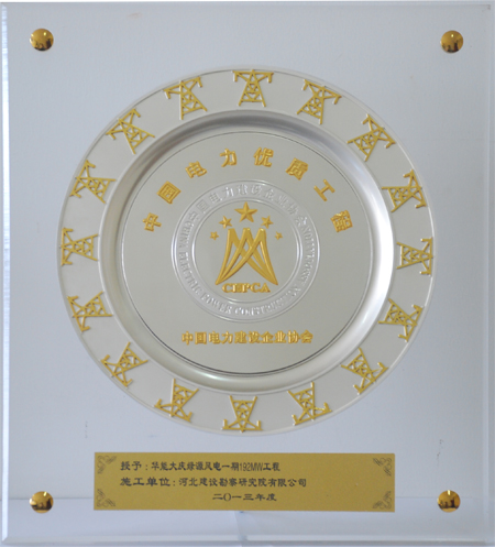 近日,我公司参与施工的华能大庆绿源风电一期192MW工程(新立、五棵树风电场风机桩基础施工)被中国电力建设企业协会评为2013年度“中国电力优质工程奖”。